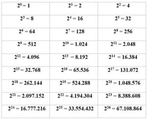 512· 131072  = 29 ·217 = 226  buscamos en la tabla de potencias de 2 el valor de 226 = 67. 108.864 y obtenemos:  512·x 131072  = 67. 108.86.